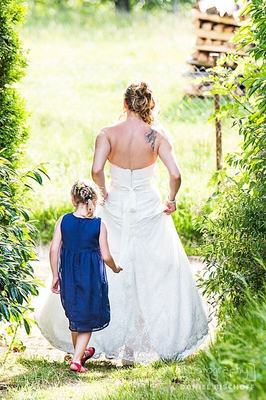 Dann: Anzug an, Kamera schnappen und den gleich ankommenden Bräutigam empfangen… erste Fotos schießen… dann kam die Braut - meine Schwester. Ich habe die schönste Schwester der Welt!